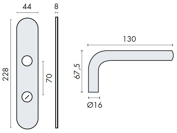 Paire de béquilles sur plaque LOGINOX L 16 mm fonction WC, inox brossé 304