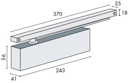 Ferme-porte à bras à glissière à crémaillère elliptique, force 1-4 suivant norme EN 1154 A. Réglage de la vitesse de fermeture et de l'à-coup final par vis, freinage à l'ouverture non réglable, capot anti-vandalisme. Pour portes de largeur maximum : 1100 mm