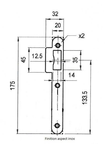 Gâche simple empennage pour serrure EXS aspect inox