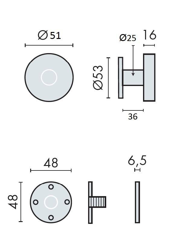 Bouton fixe sur rosace ronde série Project, inox brossé 304