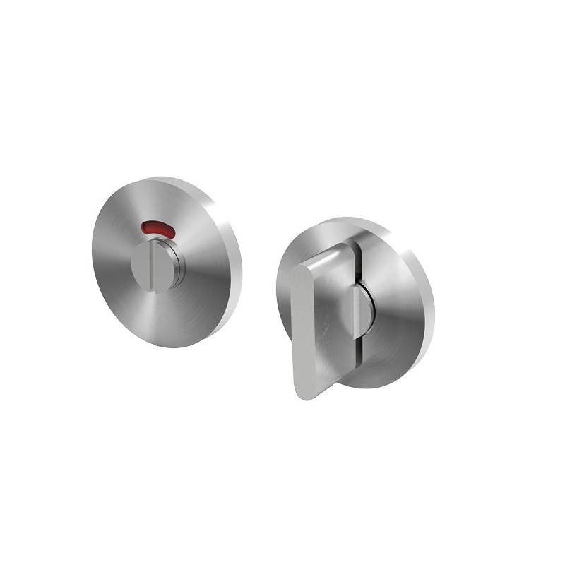 Ensemble condamnation - dé condamnation avec voyant série "Project". Finition inox brossé AISI 304, diamètre 53 mm, épaisseur 6,5 mm et carré de 6*6 mm.