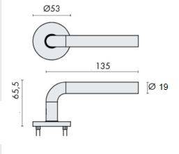Paire de béquilles sur rosaces rondes à visser, L19 mm modèle "Project 02", conforme à la norme EN1906 grade 4. Rosaces intégrant un ressort de rappel + douilles pour vis traversantes pré-montées et sous construction acier inoxydable. Finition inox brossé AISI 304.