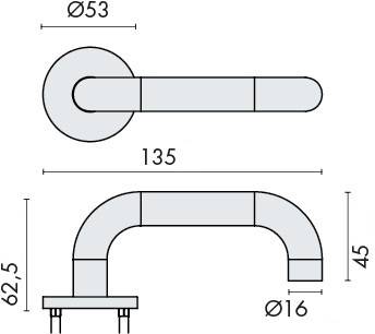 Paire de béquilles sur rosaces rondes à visser, U16 mm Project 03 - Inox brossé 304