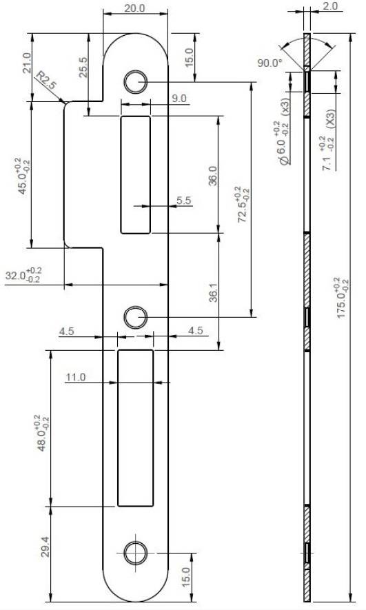 Gâche Double Empennage pour Serrure EXS à Rouleau Inox