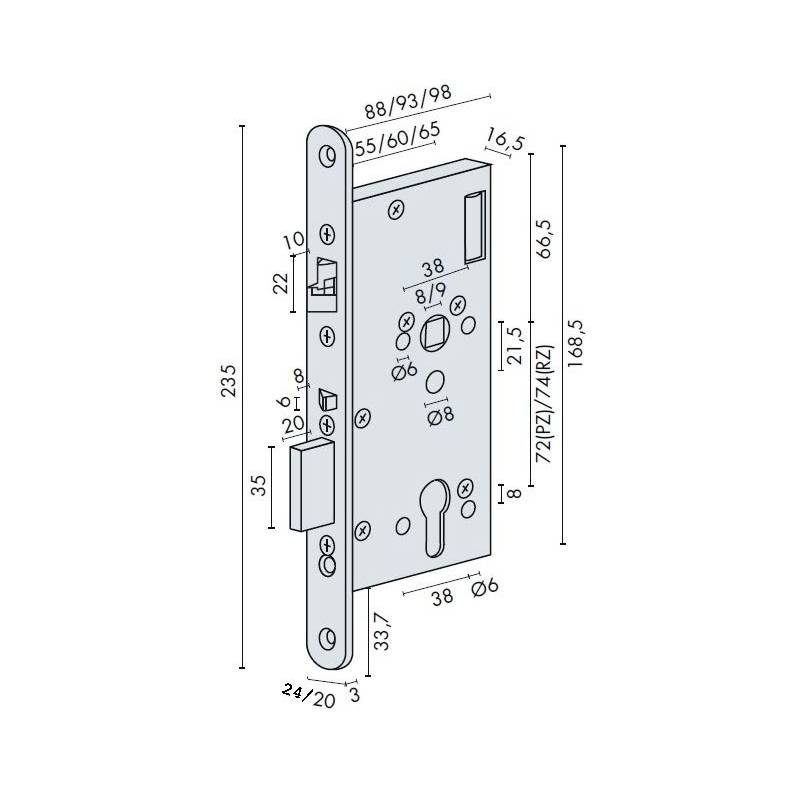| Têtière acier inox brossé, gâche acier chromé de 3 mm d'épaisseur | |